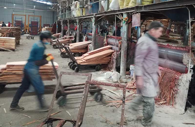 4:將晾曬好的單板存入倉庫備用,我們擁有大型的單板成品材料倉庫。